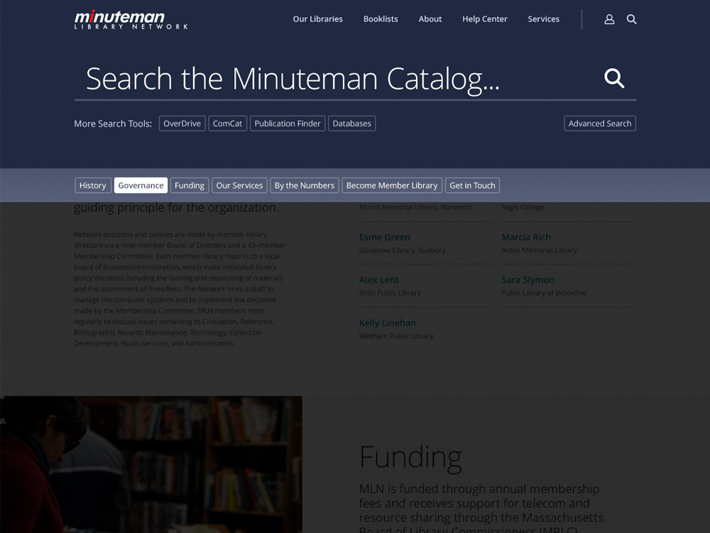 The Minuteman Public Library’s website became more usable with consistently branded design elements and simplified user interface designs.