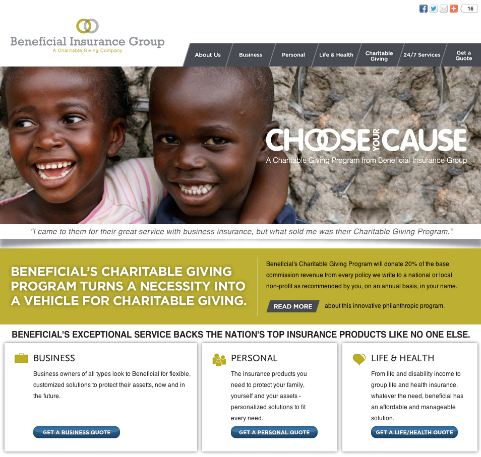 Recently, Metropolis Creative created a website for Beneficial Insurance, making its main focus the Charitable Giving Program rather than insurance policies. The website’s main call to action wants the user to Read More about the innovative philanthropic program. It also outlines the different types of policies offered by Beneficial. The homepage is broken up into boxes in order to clearly layout the different areas of the company for the user. Facebook and other social media integration will assist in spreading the word of the program as well. The site will be used to help the company find new customers as well as teach more people about its Charitable Giving Program.
