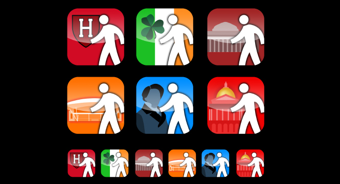 Metropolis is proud to showcase a new set of iPhone icons designed for Mobile Technology Team. The challenge with an iPhone app icon, is that it not only needs to be understood as a small icon, but it has to stand out from competing icons as well. A clean “walking guy” clearly defines the apps as walking tours while the background illustration and colors help define the type of tour. Download this free app from the iPhone store and let us know what you think!