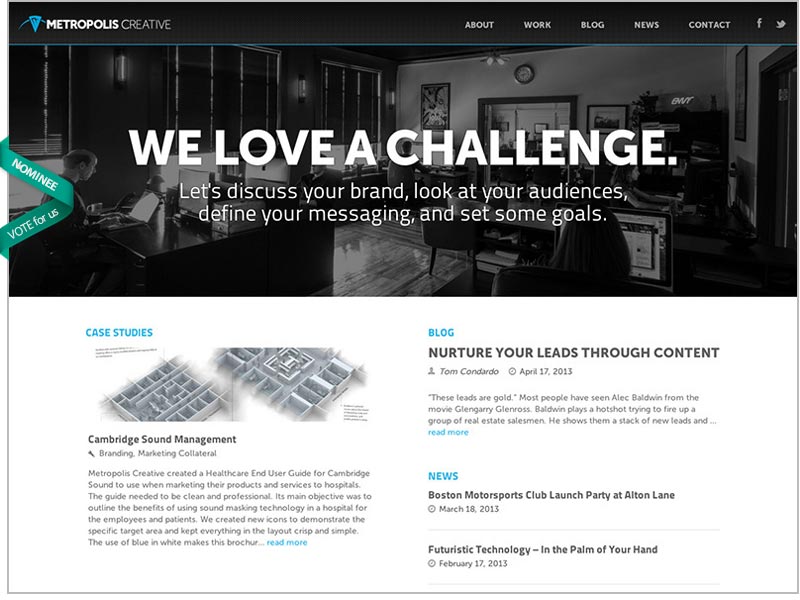 Metropolis is honored to be named a nominee on Awwwards.com. Awwwards is one of the design industry’s most prestigious collections of award-winning website designs in the world. Our fully responsive (mobile optimized) site will continue to be displayed as an example of outstanding website design on their site. Additionally, you can find Metropolis’ new website design showcased on CSS Mania and Mobile Awesomeness.