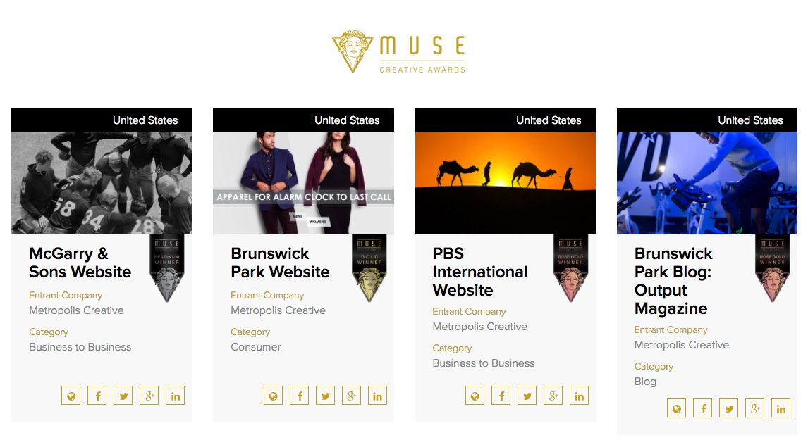 Metropolis Creative is proud to announce it has been awarded four Muse Creative Awards.