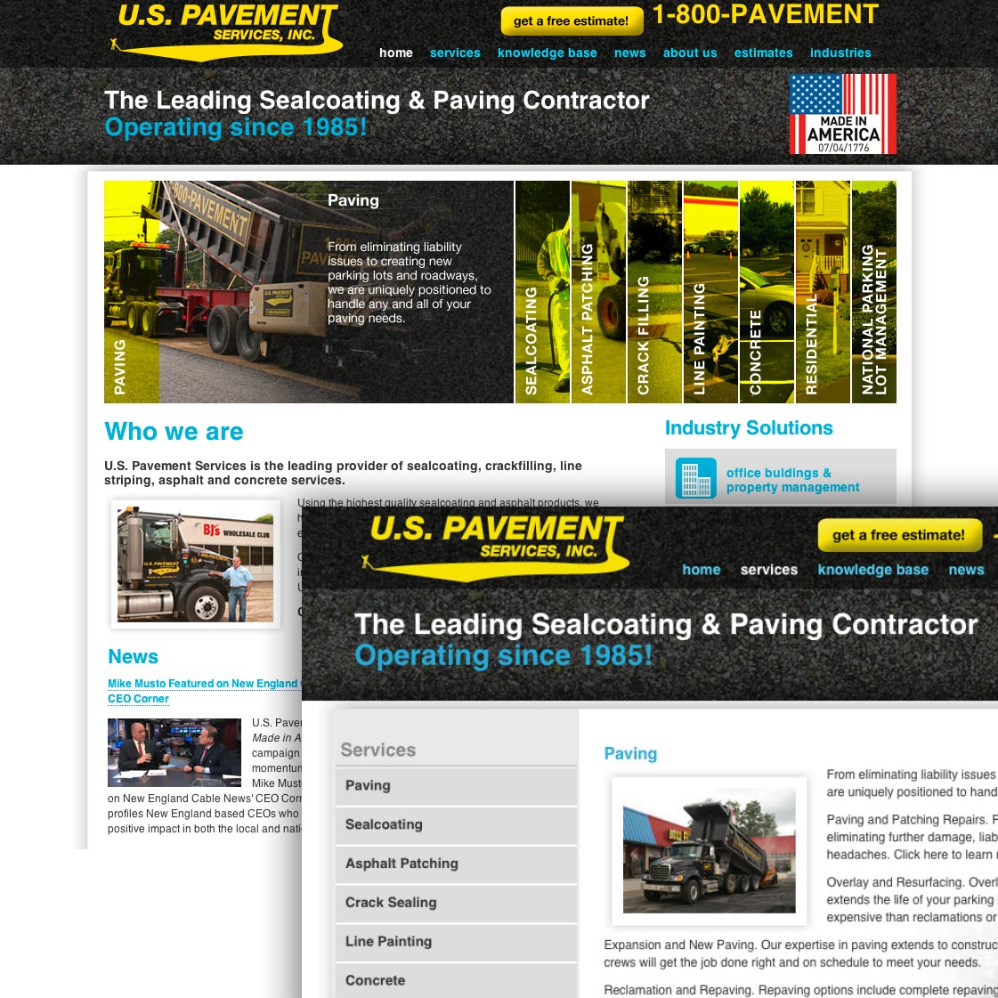 Metropolis worked closely with Spotlight Communications to deliver a much improved website redesign for their client, U.S. Pavement Services, Inc. One of the biggest challenges here was to showcase the many different services that U.S. Pavement offers without overcrowding the website design with information. The solution we came up with was to organize this content using interactive sliders that show and hide information on mouse over. This enables the user to easily and intuitively navigate to the information they want with fewer clicks.