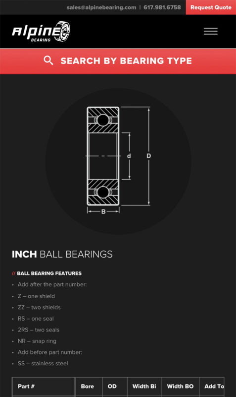 Alpine Bearing is a ball bearings supplier with over 600k parts in stock and the ability to buy and ship internationally.
