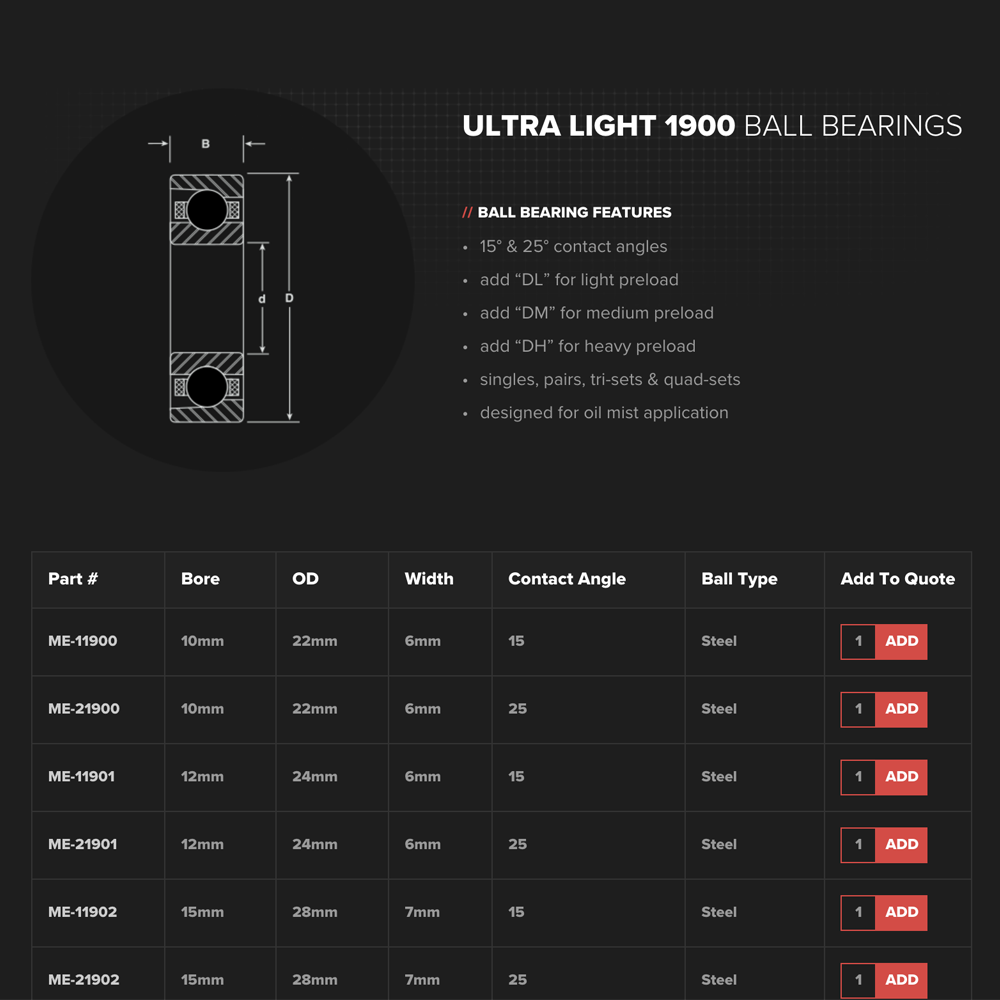 Bearings were carefully shot for the different areas of the website. We also went on location to shoot some interior shots including their clean room, which is a big differentiator for them.