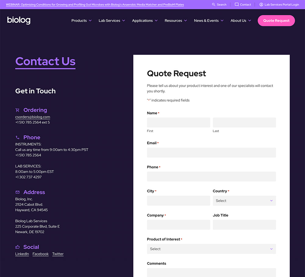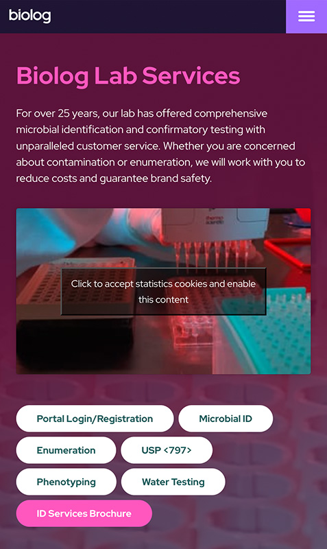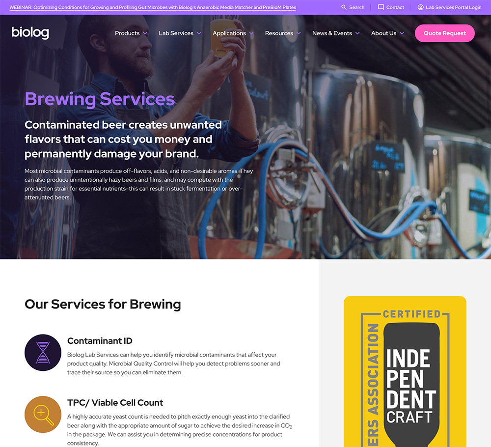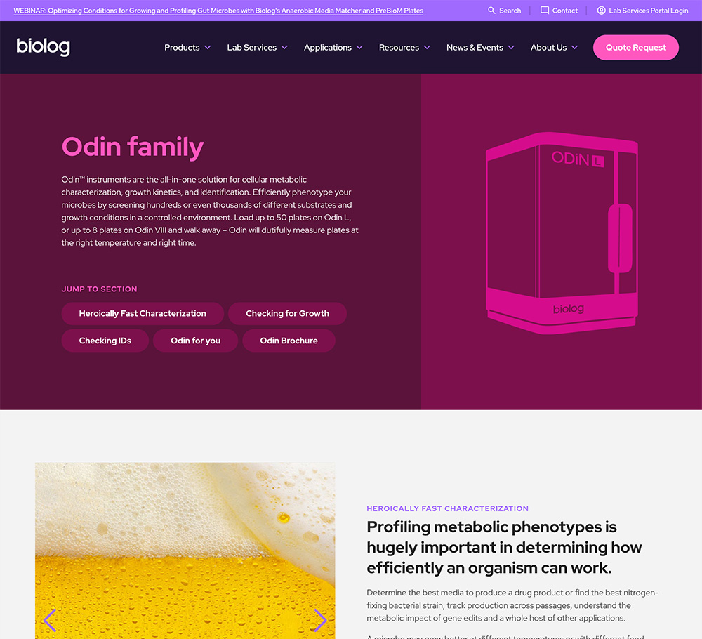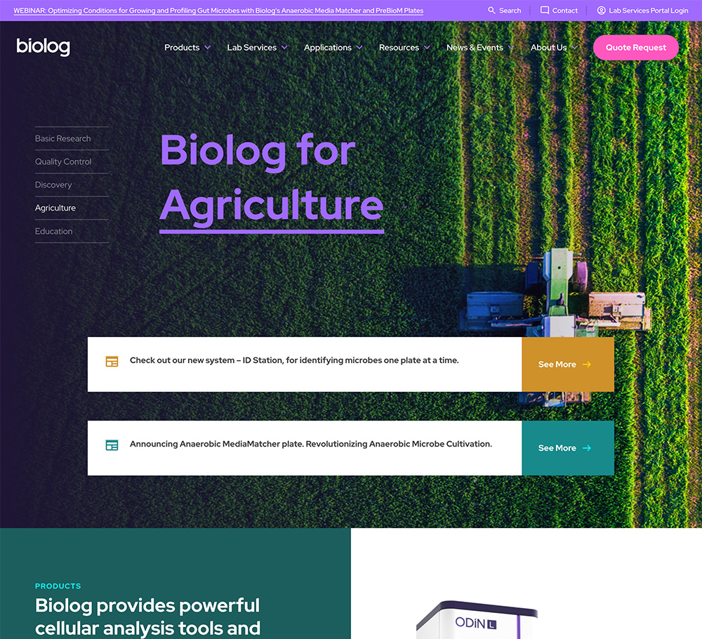 With the largest library of compounds and database of organisms for cellular interrogation, Biolog leverages their unrivaled working knowledge of metabolic pathways and best-in-class services to identify and phenotypically characterize almost anything, even the weird stuff. Metropolis followed their brand guidelines to create a site that matches all their other marketing materials.