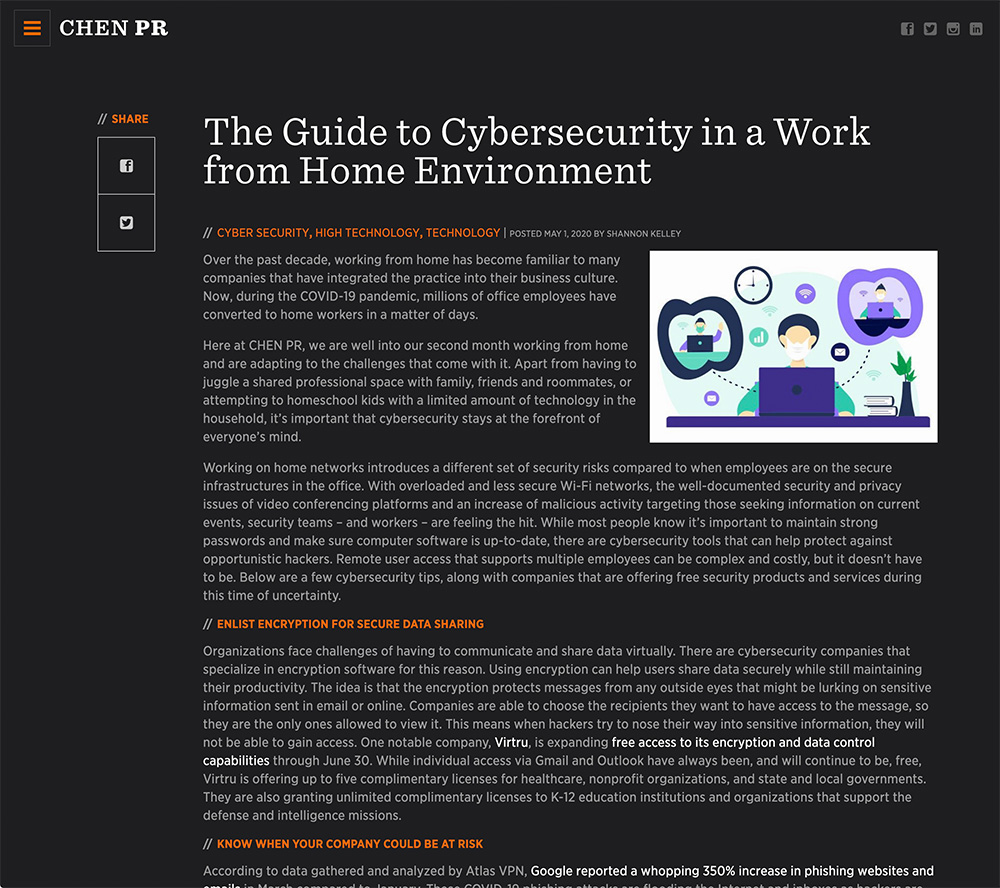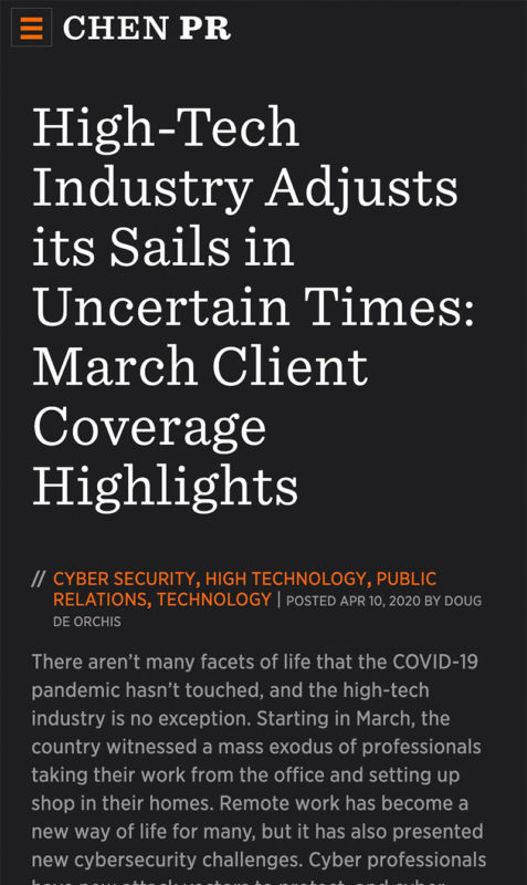 CHEN PR is a full-service PR and communications firm. They offer media and analyst relations, message development, positioning, influencing, content writing, program management, and fully executed multi-faceted campaigns. CHEN works to establish and ignite the kind of thought leadership that helps tech companies increase sales, expand channels, raise valuations and sustain success.