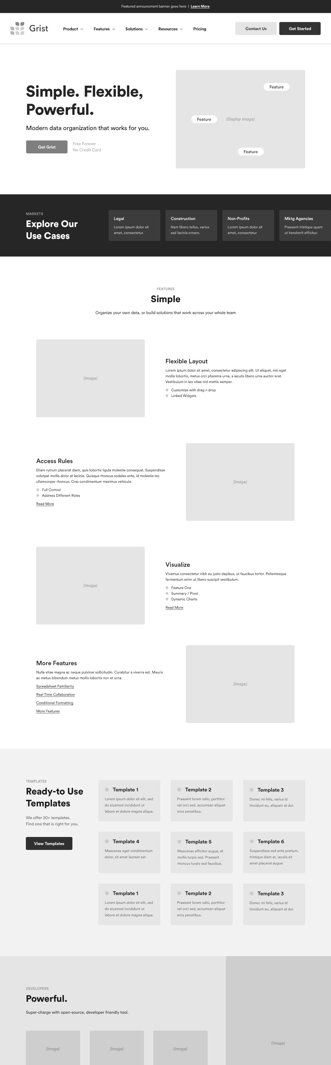 Every website design starts with a set of wireframes to help us better understand what content is needed on each page. A good page design should tell a story in the right order. Size and position help set the hierarchy of how the content will be consumed. The most important aspects of the design and usability happens in these blueprints before we move on to the color design mockups.