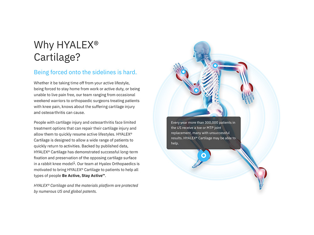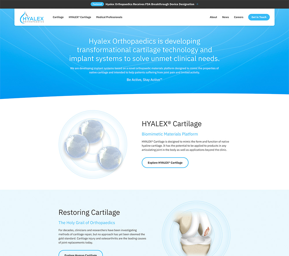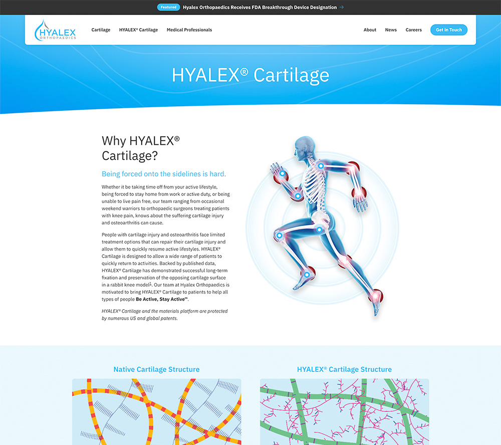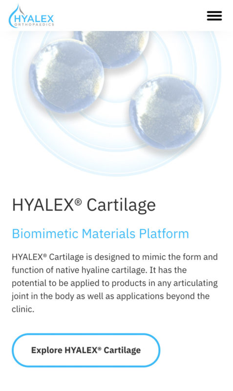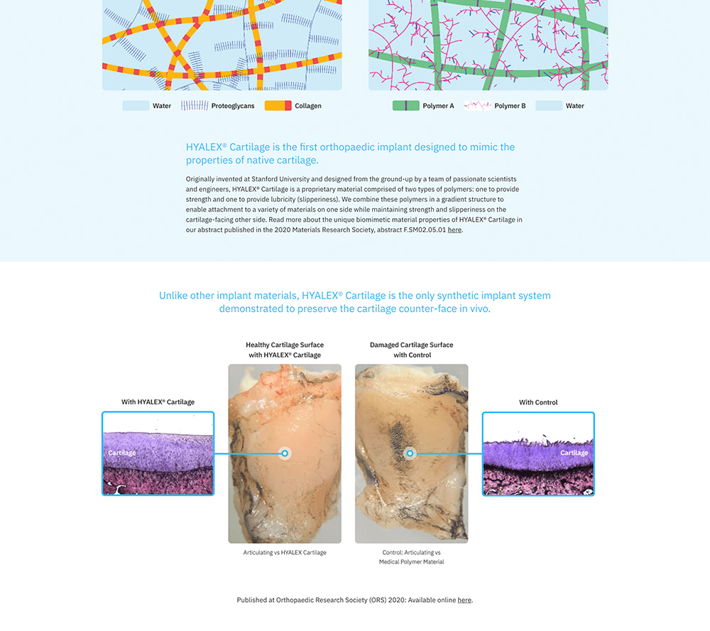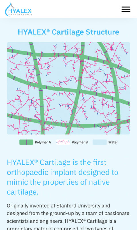 Hyalex is developing transformational cartilage technology and implant systems designed to mimic the properties of native cartilage. The goal is to help patients suffering from joint pain and limited activity.