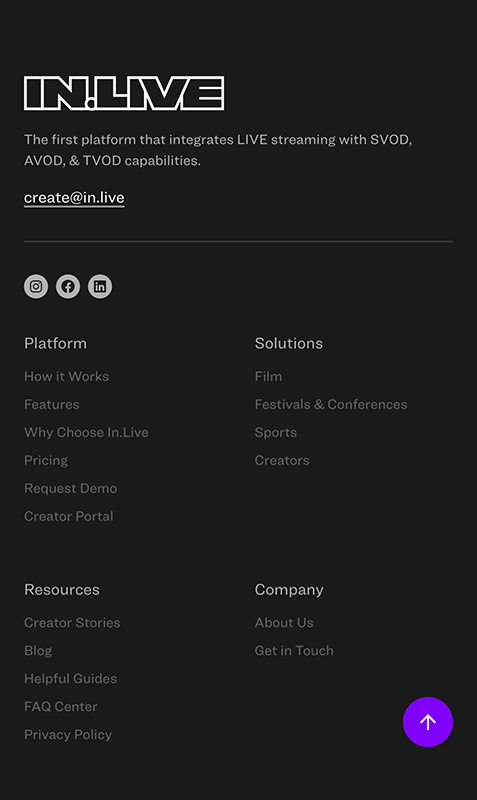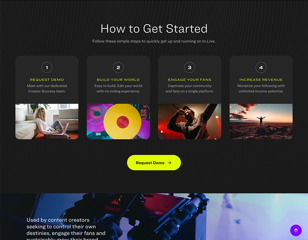 The new website for In.Live has an attractive aesthetic that presents its platform and features in an organized and engaging manner, making it easier for new creators to navigate and attract them to the site. The site was custom-built on WordPress and uses the Gutenberg editor — a content management tool that makes it easy for clients with little experience to edit the site.