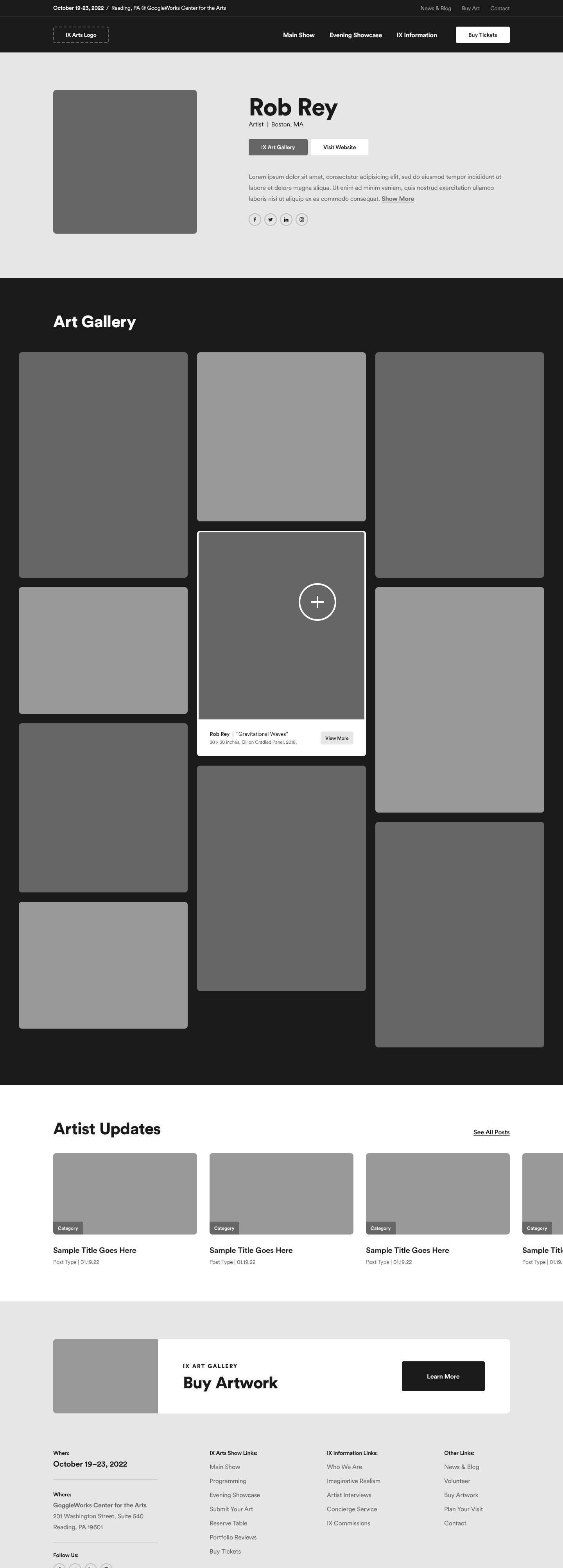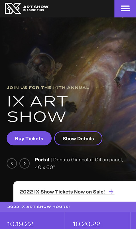Site navigation was consolidated and renamed to be easier to use. Artists’ work is larger and easier to navigate to. In addition to the two websites designed and built, Metropolis created a third artist portal site that allows artists to upload and maintain their artwork, as well as allowing the client to moderate which website (and show) the artwork will be showcased in. This reduced a huge amount of work needed by IX Arts, and next year’s show will be even easier to curate. The new site works really well on small screens — many users will be interacting with it while at the show.