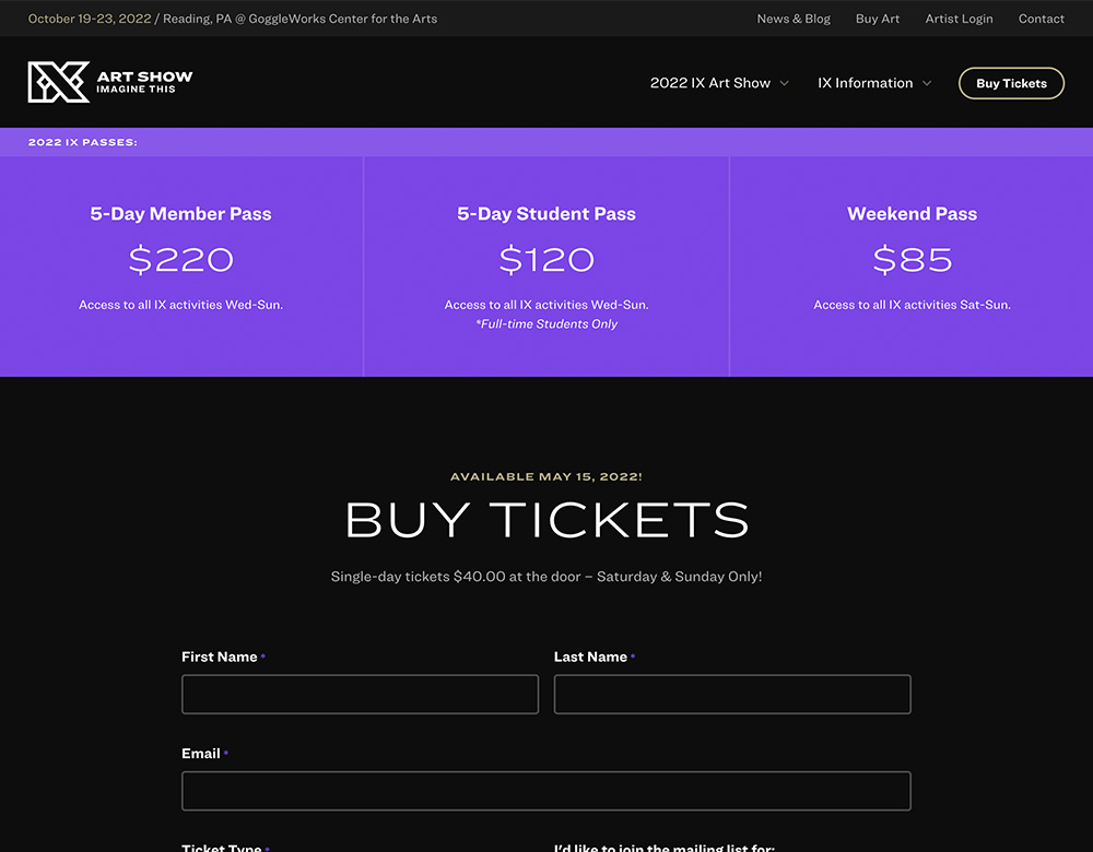With artists entering their work when they register, the show site can go live months earlier which will allow more time for ticket sales. It now works beautifully on mobile phones and the architecture is much more customizable for future functionality.