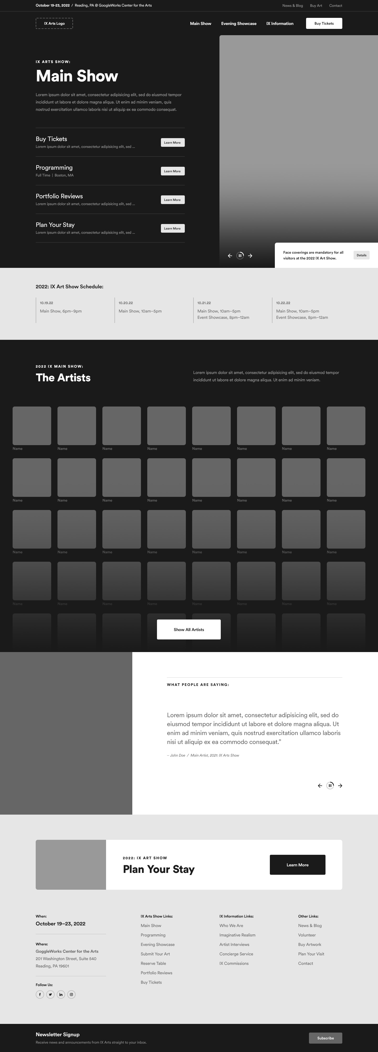 The show programming doesn’t get finalized until the very end and needs to be easy to maintain by IX Arts. The new design works great on smaller screens, where users can navigate by day or just scroll to see everything. Events click to reveal details.
