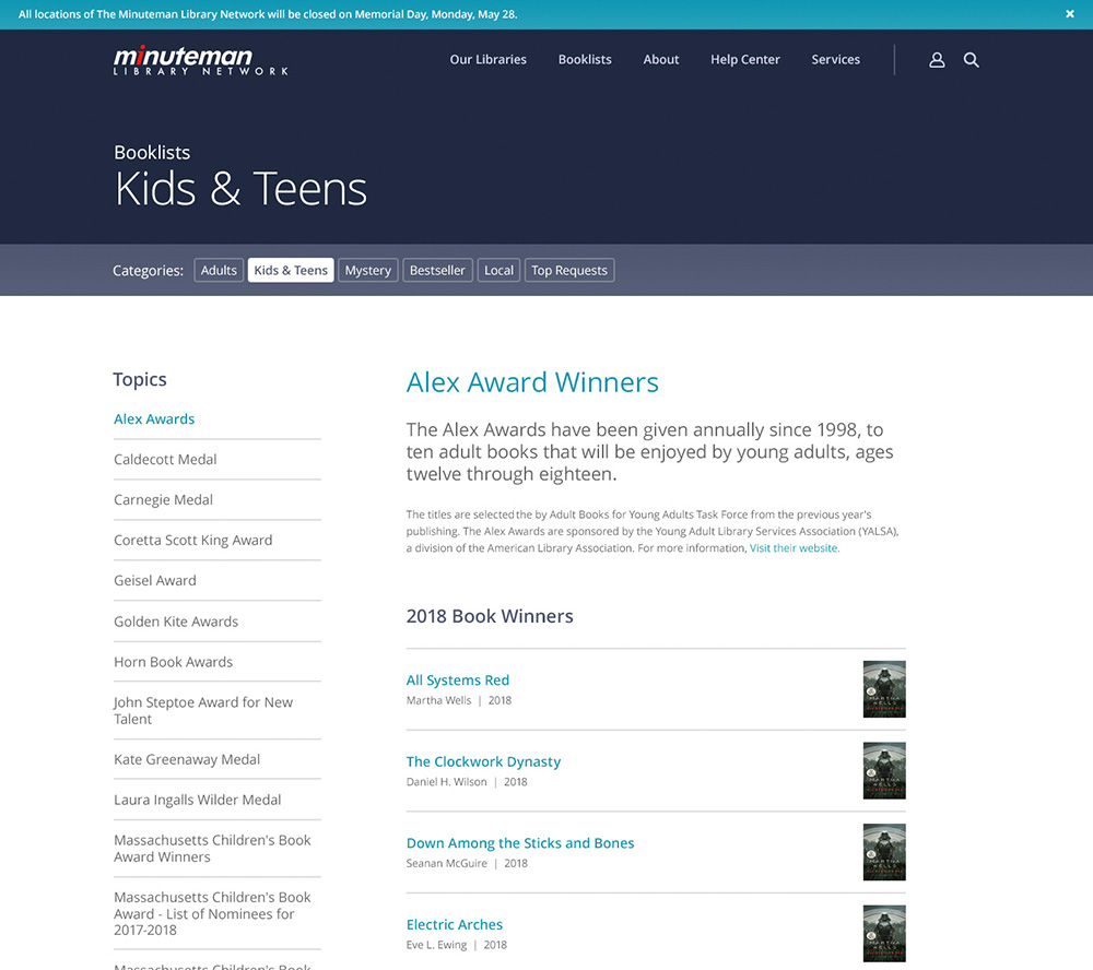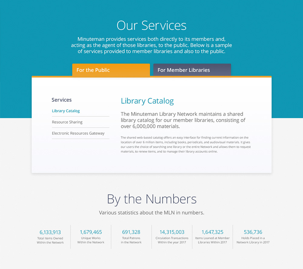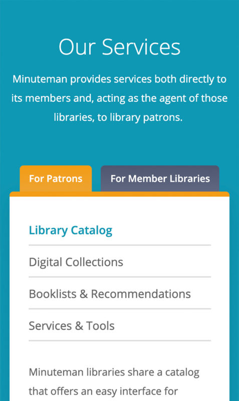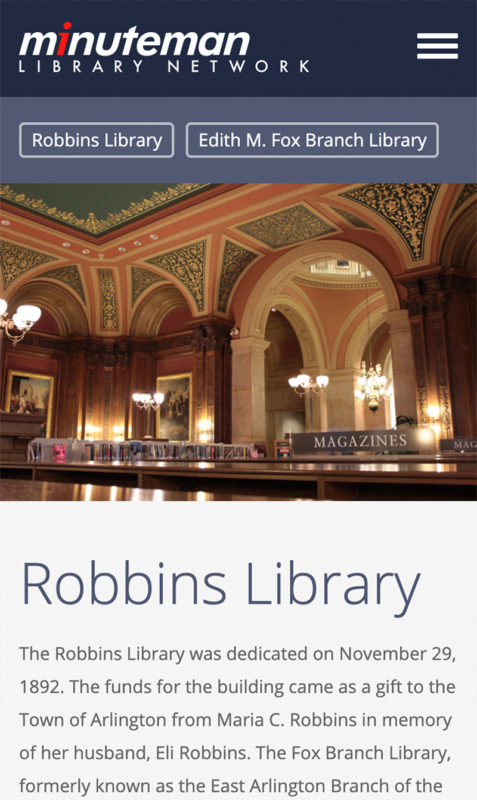 The Minuteman Public Library’s website became more usable with consistently branded design elements and simplified user interface designs.