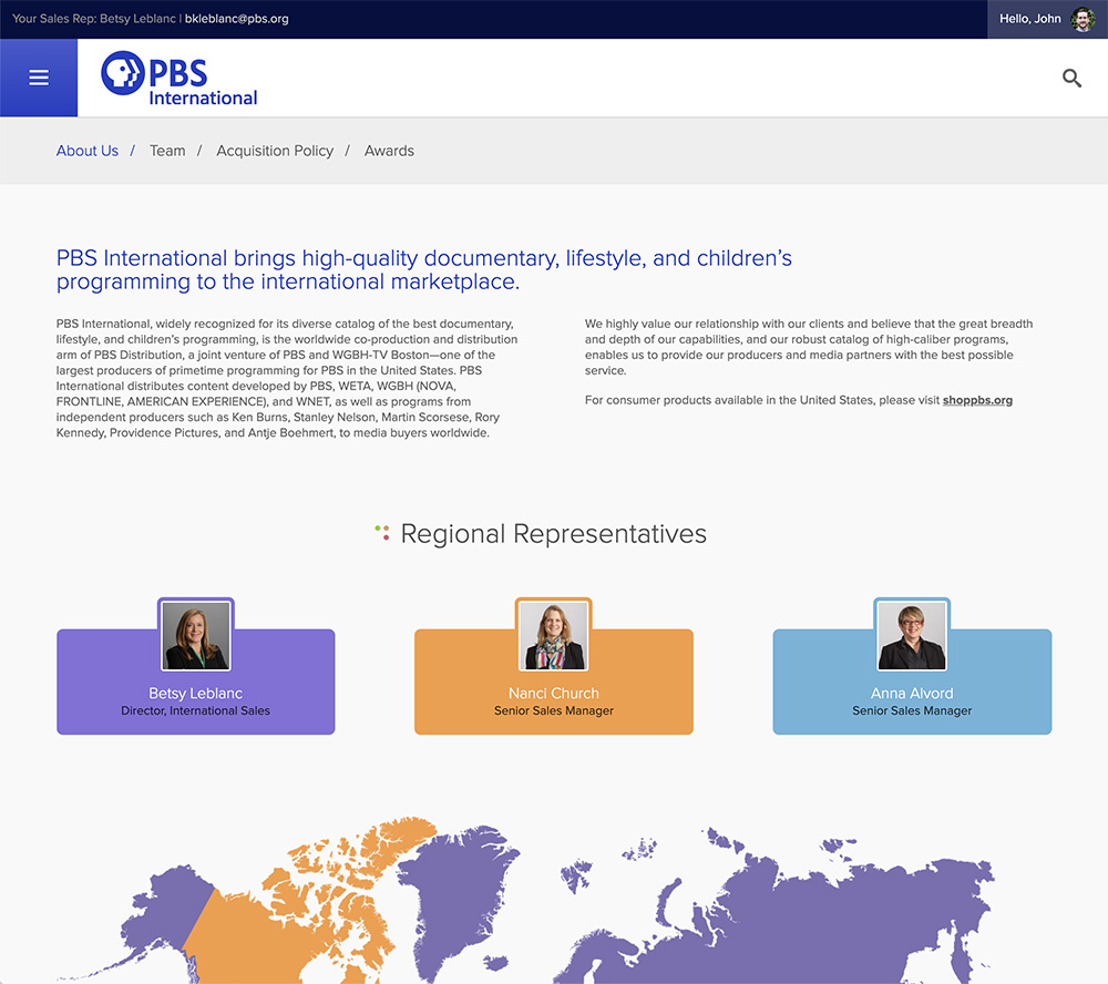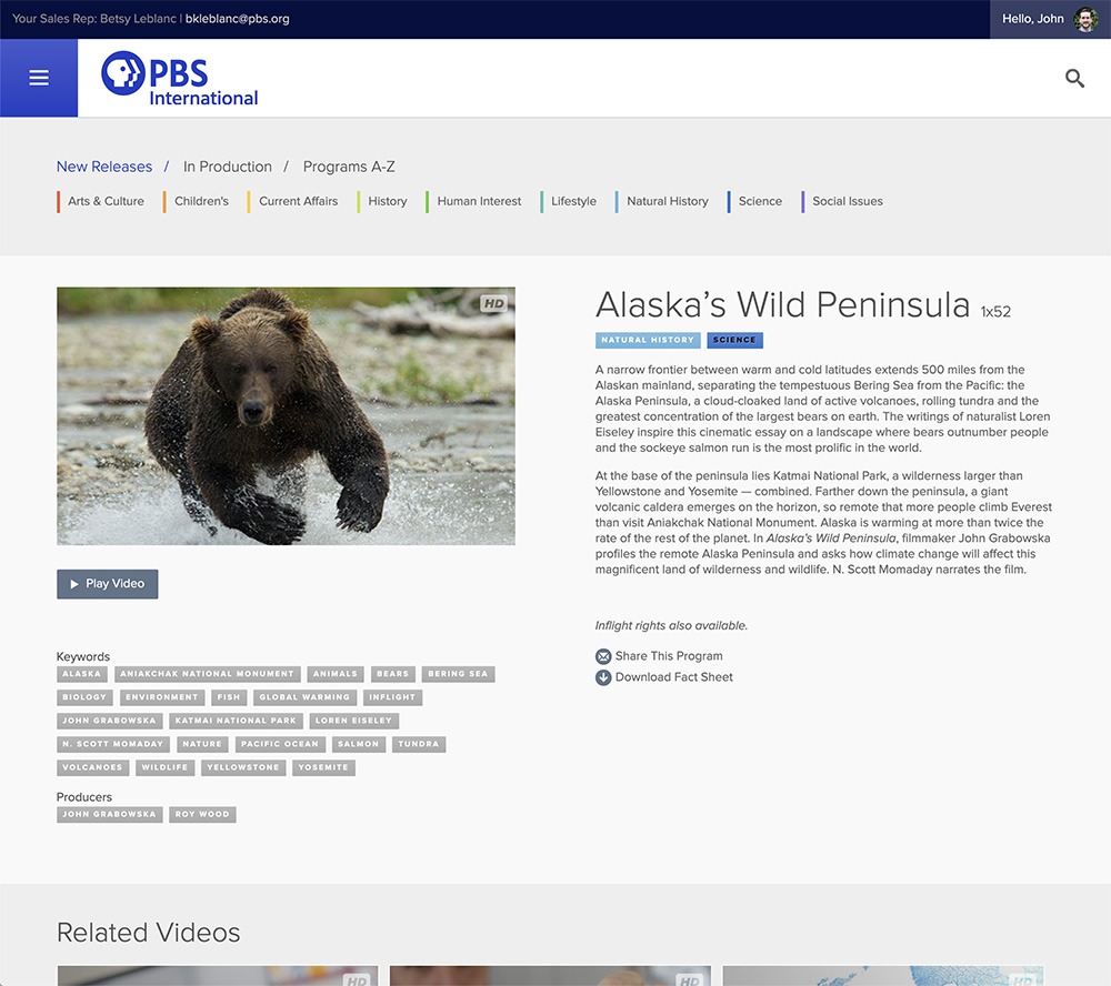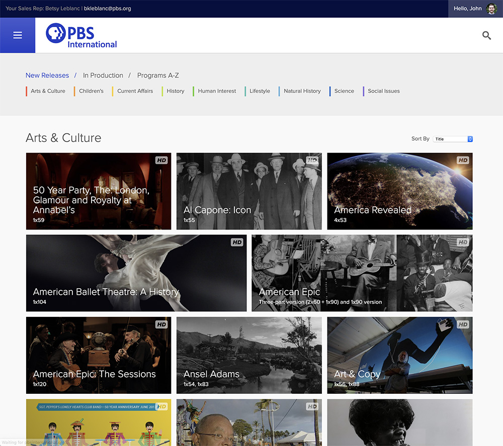 PBS’s audience is multinational, and we needed to design the simplest way for broadcast stations to log in, find the programming they are looking for, and then contact their sales rep to license it. Genres were assigned colors and appear on each thumbnail image so users can easily browse through content of interest. The search tool was designed and tested to be as intuitive as possible.