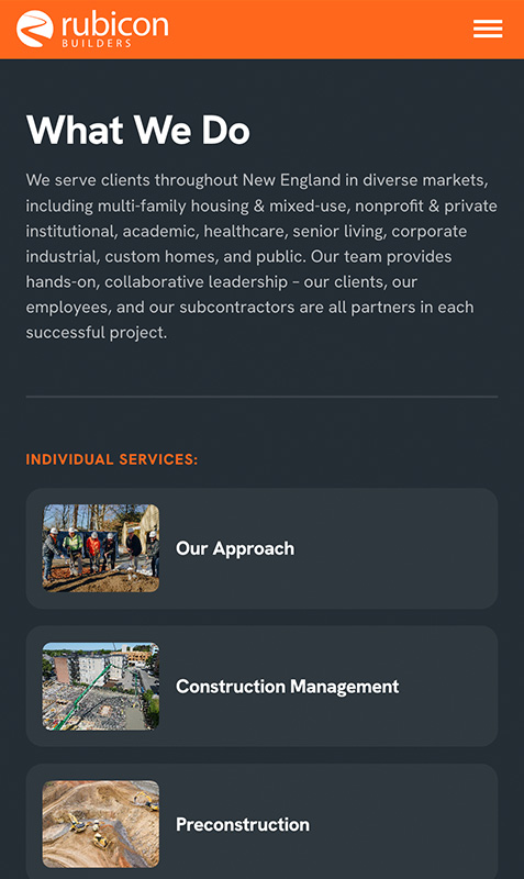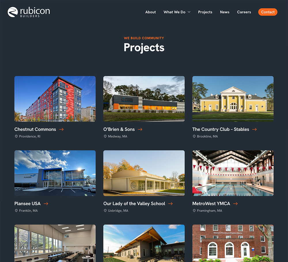 Rubicon Builders combines the expertise of seasoned construction professionals with a fresh approach. Serving clients across New England, the company specializes in multi-family housing, mixed-use, nonprofit and private institutional projects, academic, healthcare, senior living, corporate industrial, custom homes, and public sector work. With a hands-on, collaborative approach, Rubicon Builders fosters strong partnerships with clients, employees, and subcontractors to ensure every project’s success.