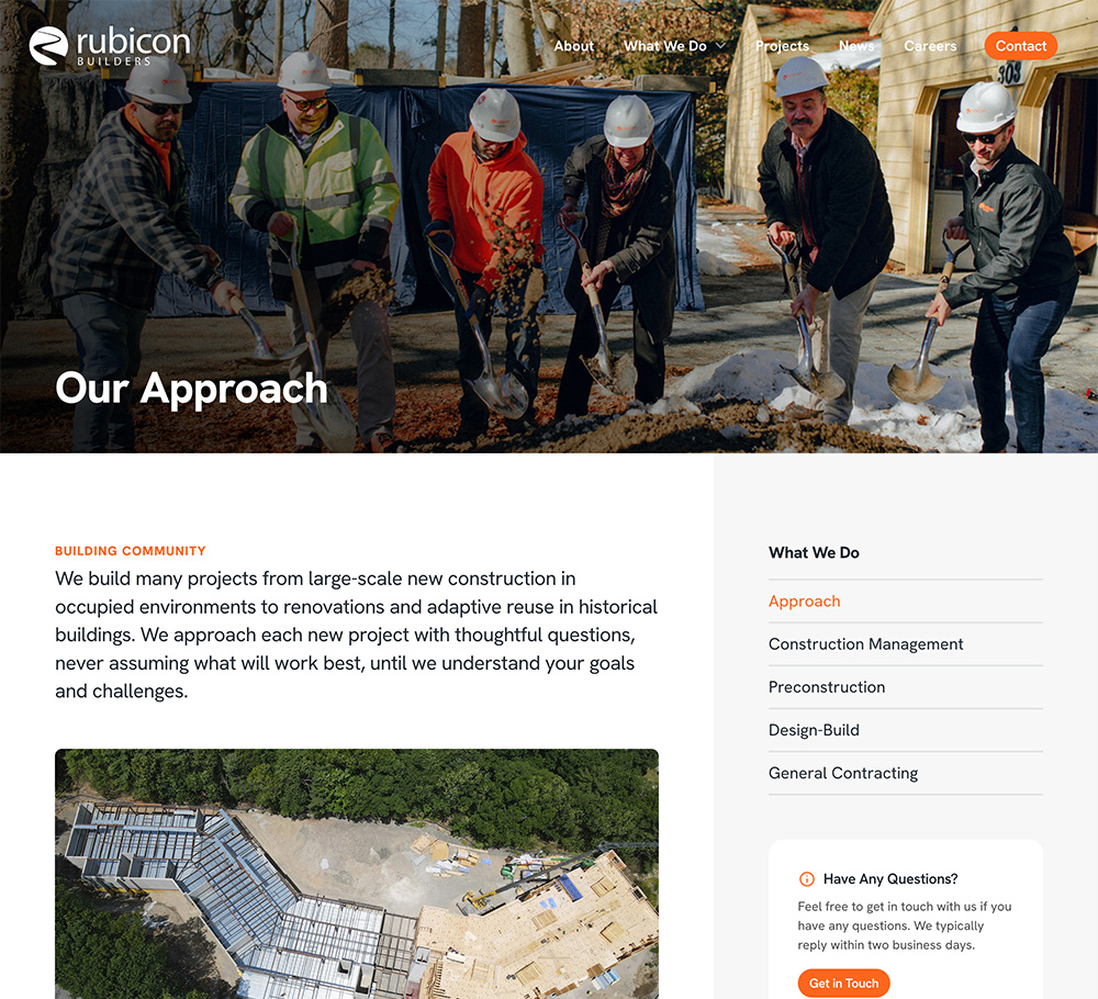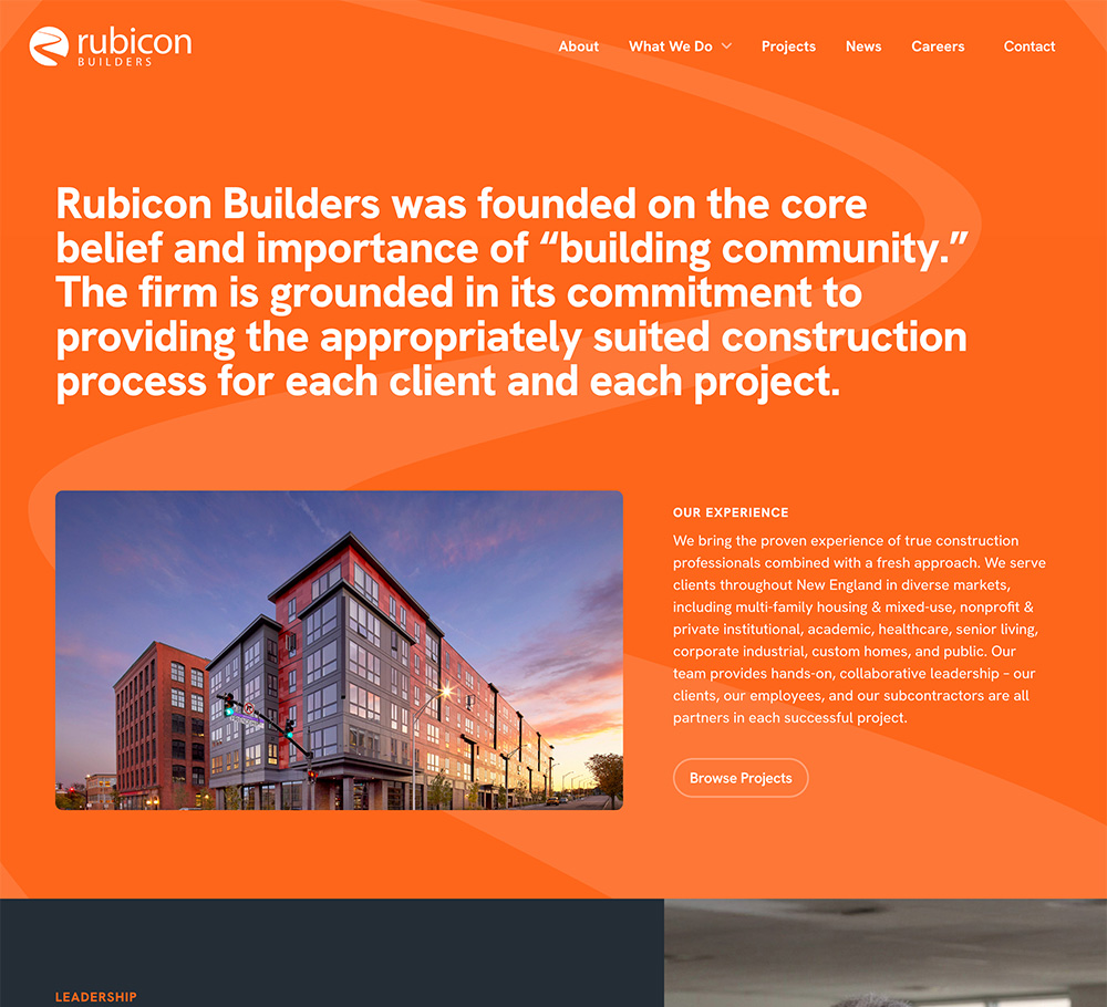 From our initial conversations, it was clear that Mike Flint and the Metropolis team understood our goals and had the expertise, creativity, and a plan to get us there. We were looking for a new, modern website that accurately told the Rubicon Builders’ story, and it was important to us that the process be efficient. Metropolis delivered and more! During development, the Metropolis team led a collaborative and diligent process to create and then launch our new website. We are thrilled with our new website, and we’re glad we partnered with Metropolis.