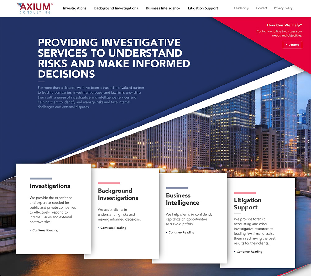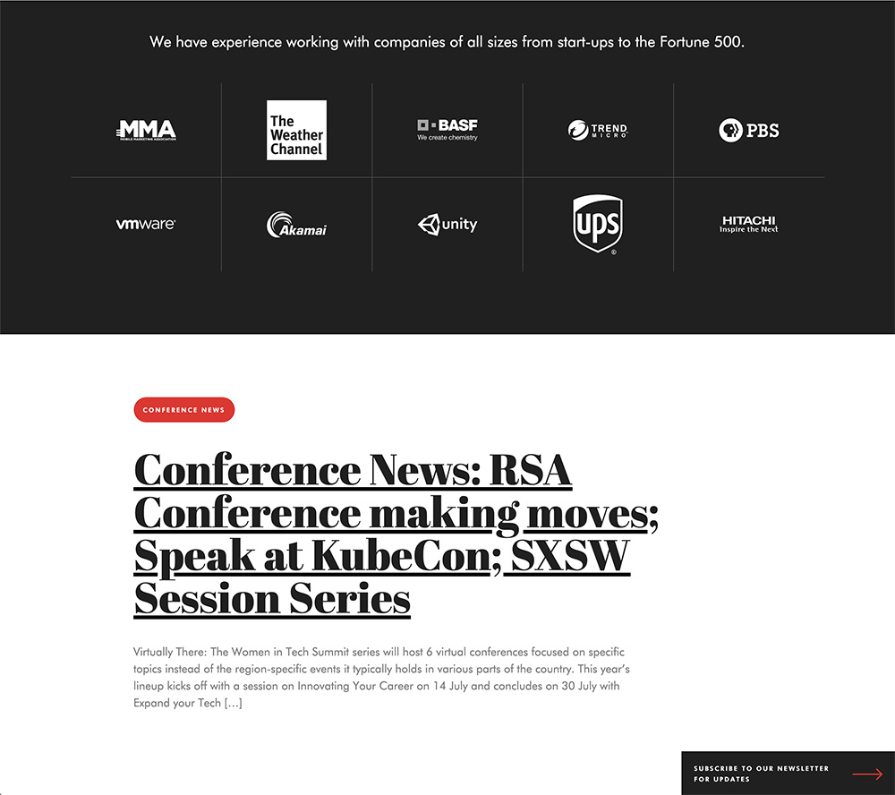 We took a typographic approach with this website design because there weren’t many images available to use. The client’s red and black color scheme was fun to work with — contributing to a strong, bold brand statement.