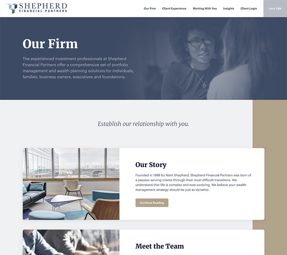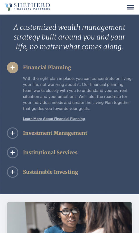 Shepherd Financial Services now has a website that portrays them in the right brand tone. And the content is easy to update by anyone on their team.