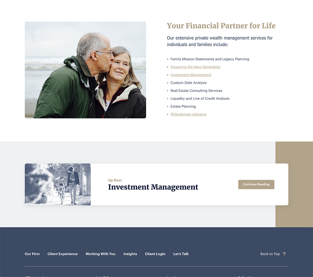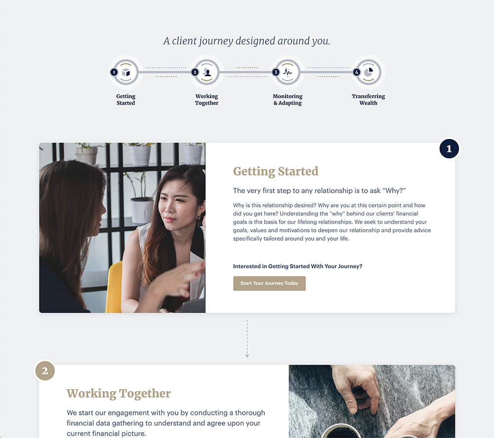 At Shepherd Financial Partners, their brand is equal to their customers. This page explains how they work with their clients, in a thoughtful and caring way, at every step.