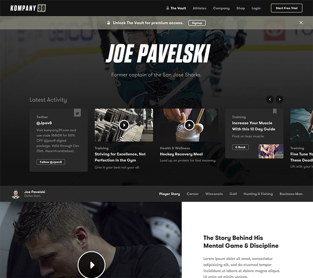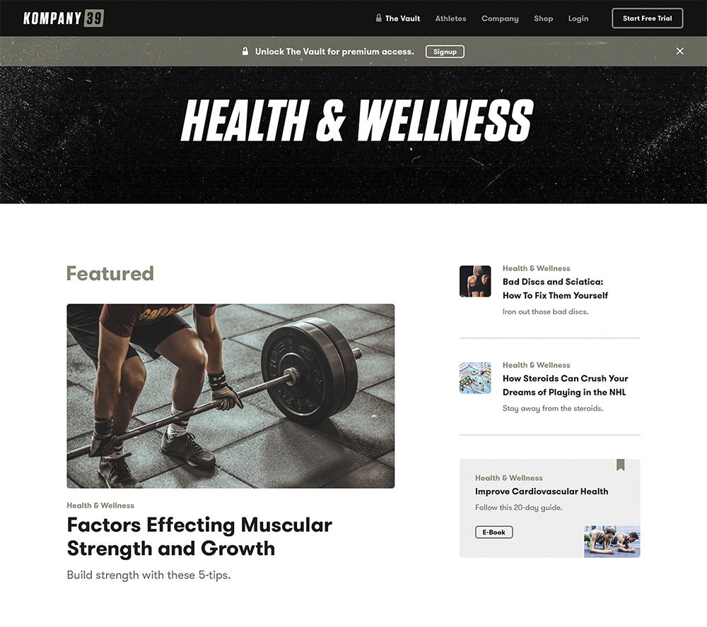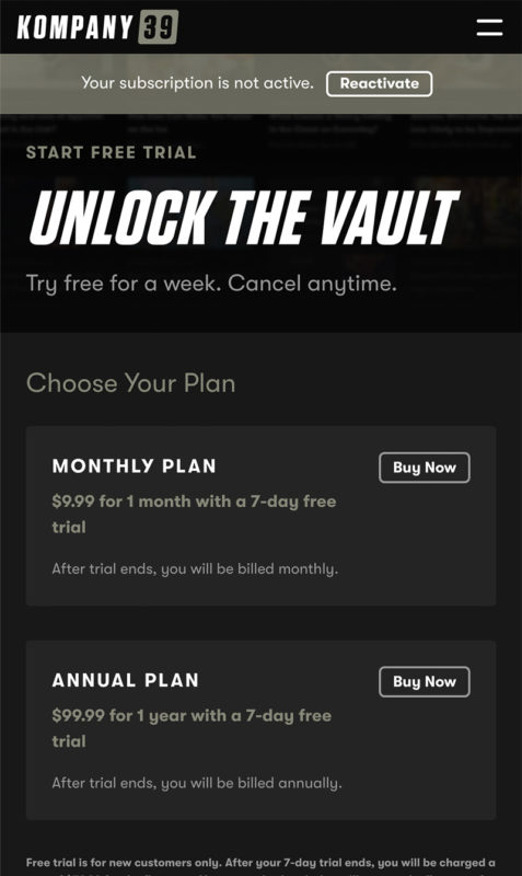 Highlights are offered for free, but paid subscriptions unlock exclusive content. When a customer is logged in, The Vault becomes their home page and signup CTAs disappear.