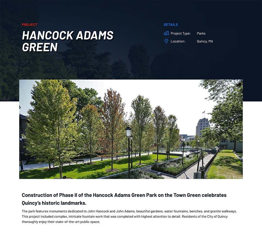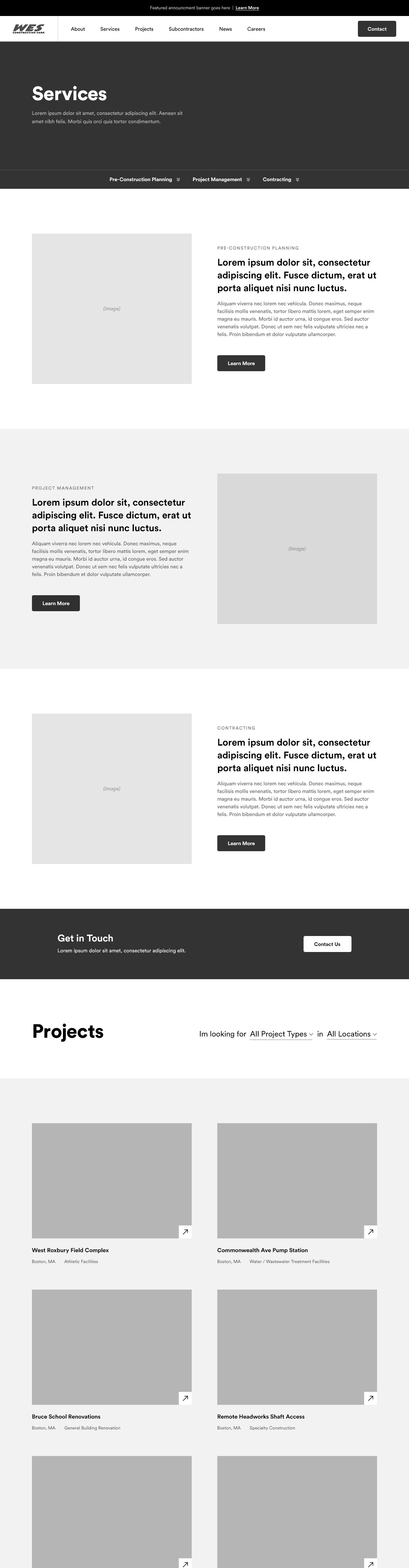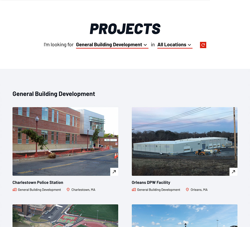 Projects are filterable by category and location. This system can easily grow with WES Construction as they collect new project photos and information. The design uses large imagery to highlight the quality of their work. Custom icons, and bulleted project details make the projects quick and easy to read.