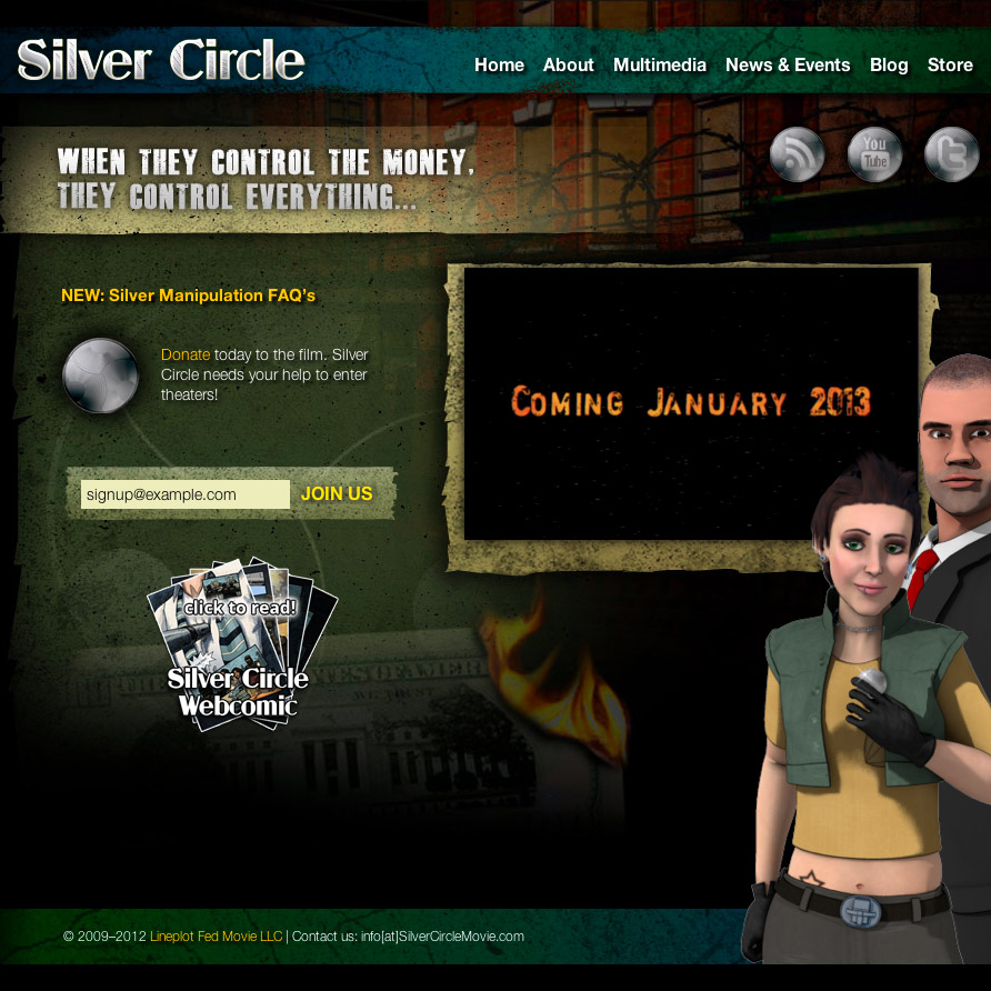 Lineplot Productions was looking for a cool website design for their upcoming 3D animated film project Silver Circle. The site has pre-production photos, short clips of the film, and character bios. Metropolis developed three custom WordPress themes that allow the client to update virtually any part of the website themselves and the photo section integrates with their Flickr account. Social media integration includes two community blogs, Facebook, Twitter, YouTube, RSS feeds and an “Agents” area where fans can sign up to become part of the Silver Circle project.