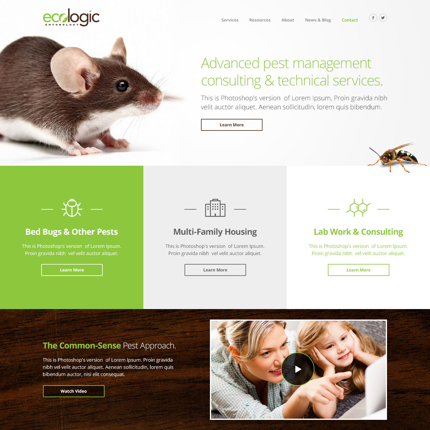 Ecologic Entomology makes pest management easy and approachable. Large images of non-creepy-looking pests were used throughout the site to keep it interesting and engaging. Special attention was paid to their search-engine-optimization for specific terms. The site is responsive and loads a different mobile layout for phones.