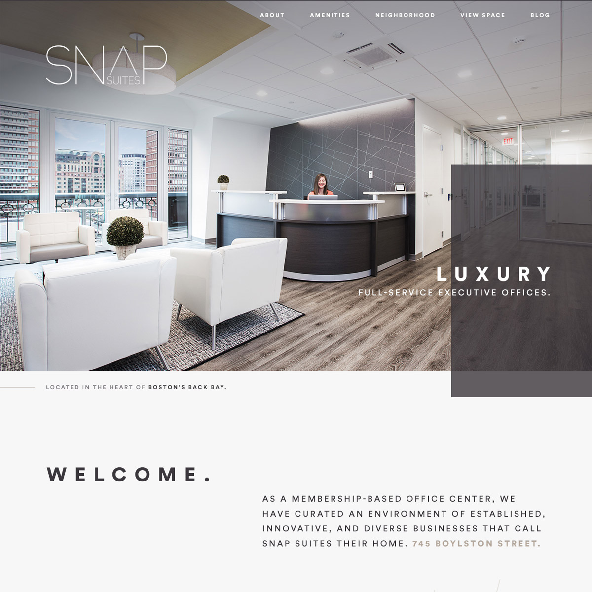 SnapSuites is a membership-based office center located on Boylston Street in Boston’s Back Bay. They offer spacious private offices, innovative technology, incredible work/lifestyle amenities, and receptionist support. Members are executives, entrepreneurs, and businesses of all sizes — both national and regional — looking for high image space with none of the associated up-front capital.